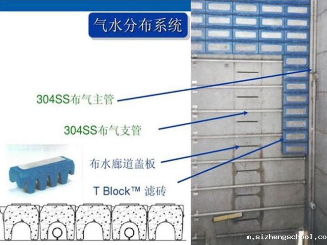 现行的常规工艺:T型滤砖气水分布系统
