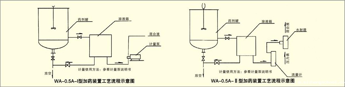 1、当加药设备必须连续使用时,至少需用两套装置,一套工作,一套配制药液。