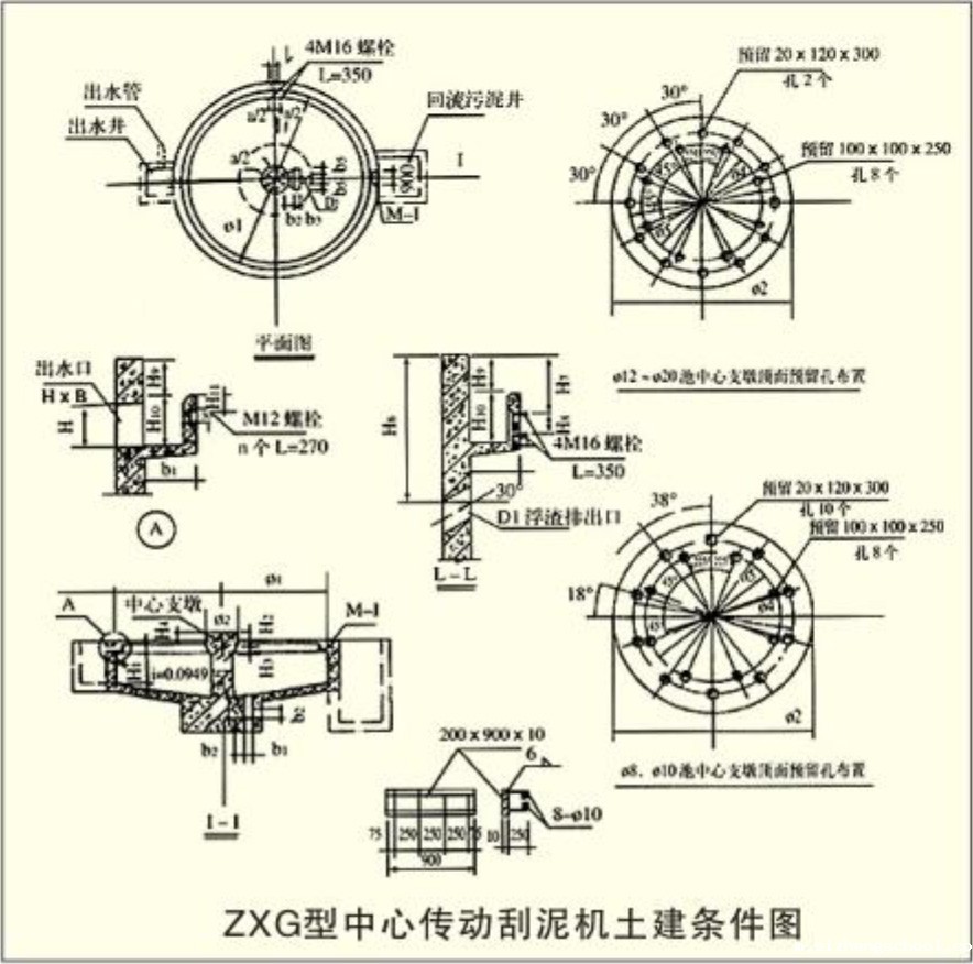ZXG型中心传动刮泥机广泛用于给水工程中的沉淀池排泥,整机载荷都作用在工作桥中心。污水经中心稳流筒布水后流向周边溢水槽,随着流速的降低,污水中的悬浮物被分离而沉降于池底,由刮板将沉淀的污泥刮集到中心集泥槽中,靠静水压力将其从污泥管排出。用户选定型号后提供详细土建条件图。